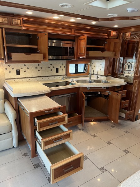 2010 Tiffin Allegro Bus Tag Axle 43QRP. 82,299 miles and in excellent condition. 1 Owner, No Pets And No Smoking. Maroon Coral Full Body Paint, Natural Cherry Cabinets, French Vanilla Interior. Features Include: ~ Drawer Type Dishwasher ~ Residential RefrigeratorFreezer With Ice Maker and 2000 Watt Inverter ~ Polished Solid Surface Countertops ~ Solid Surface Sink ~ Stainless Steel Convection Microwave With Exterior Venting ~ 2-Burner Induction Cooktop ~ Central Vacuum System ~ Ultra Leather Sofa Bed ~ Full Ceramic Tile Floor ~ Free Standing Dinette With 4 Chairs ~ Stacked Washer And Dryer ~ Medicine Cabinet With Vanity Lights ~ Solid Surface Vanity Top ~ Skylight In Shower ~ Solid Surface Nightstand Tops ~ Bedroom Solar And Privacy Shades ~ Bedroom Ceiling Fan ~ Laundry Hamper ~ 7" Ceiling Height ~ Soft Touch Vinyl Ceiling ~ Raised Panel Cabinet Doors ~ Recessed Ceiling Lighting ~ Adjustable Shelving In Some Cabinets ~ SeeLevel Tank Monitors ~ Air Driven Step Well Cover ~ Complete Cable Wiring Interfacing With Surround Sound ~ Enclosed Surround Sound Speakers ~ Energy Management System ~ Exterior Slide Trays ~ 6 New House Batteries ~ 3 - 15,000 Roof Air Conditioners ~ Engine And Generator Serviced Yearly