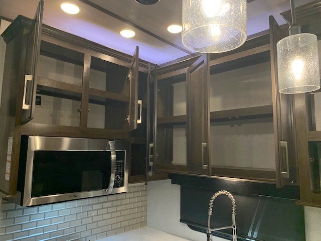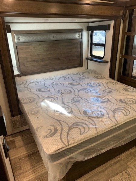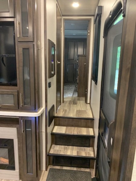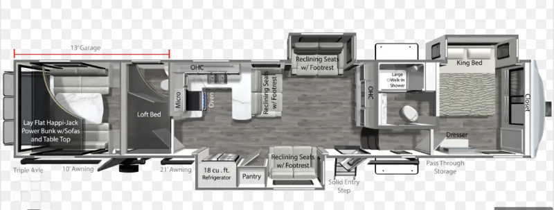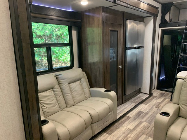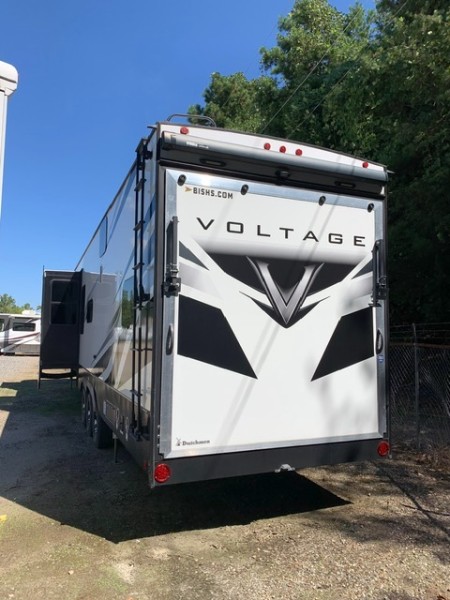 This 2022 Dutchmen Voltage 4225 has a Spacious Living and Garage Layout at Nearly 47 FT Long, The 4225 Features a Private Front Master Bedroom, Middle Living and Kitchen Area with Three Sofas and a Loft, Plus a Full-Featured 13 Ft Garage with Power Bunk Comfortably Sleeping up to 9. Has a Bath and a Half and is built for all Weather and Heavier Towing. Standout Features: * Dual Bathrooms * Loft Space * 3 Slide-Outs * 3 Awnings * 3 TVs * Tankless Water Heater * Power Bunks