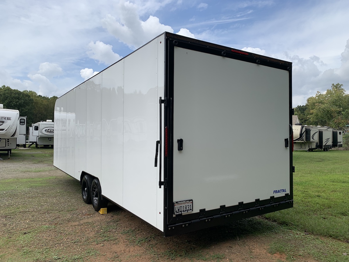 PRICE REDUCED TO $15,750.00!!! Discover the Ultimate Enclosed Car Hauler! Are you in need of a reliable trailer to transport your toys? Look no further! Introducing the 2024 Fractal Trailer Wide Body High Roof, expertly custom-designed to accommodate most vehicles while providing ample space to open doors comfortably. This trailer is not only perfect for cars but also ideal for long journeys with side-by-sides and off-road vehicles. With an impressive 8-foot high ceiling, you'll have plenty of clearance for light bars and overhead cabinets, making it both spacious and functional. Key features include: Two rows of EZ Track on the sides and front for easy tie-down options Extra floor tie-downs for secure positioning A sturdy floor constructed with 3\4 inch thick plywood Ramp doors featuring a black coin nonslip covering for safe loading and unloading An extra-wide 48” side door for easy access Dual 6000 lb axles with electric brakes Heavy duty 3/8" plate axle mounts Raceline aluminum wheels 12-ply tires on all 6 wheels (4 main/2 spares) Spare wheel hub and bearing set Electric power tongue jack Heavy duty deep-cycle battery LED interior lights LED exterior automotive lights Smooth aluminum exterior Winch plate installed and welded to frame (Winch not included) Weight distributing hitch kit is included! Experience smooth towing and unbeatable reliability with the 2024 Fractal Trailer. Elevate your transport game—contact us today to learn more!